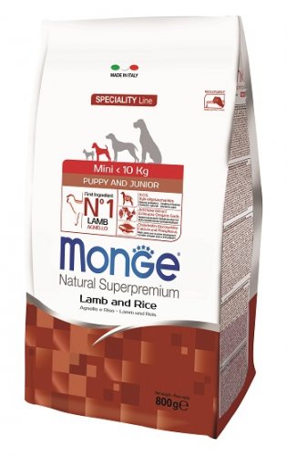 Mini Puppy & Junior Agnello e Riso Formato: 800 g - 2,5 kg Le crocchette Monge Natural Superpremium Speciality Line Mini Puppy & Junior con Agnello e Riso sono un alimento completo per cuccioli di piccola taglia. Garantiscono il benessere del cane grazie alla presenza di elementi nutritivi di altissima qualità, frutto della ricerca Made in Italy. È un prodotto altamente appetibile con la garanzia della monoproteina: un solo tipo di carne per ogni ricetta. Il primo ingrediente è l’agnello e sono arricchite con xilo oligossacaridi (X.O.S.), prebiotici naturali che favoriscono la salute dell’intestino. Contengono estratto di carciofo, echinacea, origano e aglio che stimolano le difese immunitarie e proteggono il fegato. Condroitina, glucosamina, calcio e fosforo aiutano il corretto sviluppo delle ossa e delle articolazioni del cucciolo. Agnello (fresco 10%, disidratato 26%), riso, concentrato proteico di patate, granturco, polpa di barbabietola, glutine di granturco, lievito di birra (fonte di M.O.S. e vitamina B12), proteine animali idrolizzate, grasso animale (olio di pollo contenuto in grassi 99,6%, conservato con antiossidanti naturali), avena (ricca di fibre nobili), X.O.S. (Xylo – oligosaccaridi 3 g/kg), idrolizzato di lievito (M.O.S.), yucca schidigera, spirulina, cartilagine idrolizzata (fonte di condroitina solfato), crostacei idrolizzati (fonte di glucosamina), metil sulfonil metano, radice di echinacea, origano, aglio essiccato in polvere.