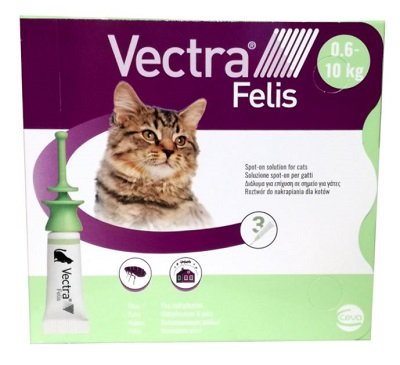 VECTRA 3D 3 PIP FELIS Ogni applicatore per spot-on da 0,9 ml dispensa: 423 mg dinotefuran e 42,3 mg piriproxifene. Soluzione spot-on da incolore a giallo chiara. INDICAZIONI Questo medicinale veterinario uccide pulci (Ctenocephalides felis) in gatti infestati e previene ulteriori infestazioni per un mese. Previene anche la moltiplicazione di pulci inibendo la comparsa di pulci immature nell’ambiente del gatto per 3 mesi. CONTROINDICAZIONI Non usare in gatti o gattini che pesano meno di 0,6 kg. Non usare in casi di ipersensibilità ai principi attivi o ad uno degli eccipienti. REAZIONI AVVERSE In rari casi, possono essere osservati leggera forfora, eritema transitorio e alopecia che di solito scompaiono spontaneamente senza trattamento. Sono stati riportati effetti estetici transitori come aspetto untuoso del pelo ed accumuli al sito di applicazione molto raramente e possono persistere fino a 7 giorni tuttavia, questi effetti non sono di solito più visibili dopo 48 ore. Questi cambiamenti non coinvolgono la sicurezza o l’efficacia del medicinale veterinario. Si possono verificare molto raramente altri disturbi al sito di applicazione come eritema, prurito, lesioni e infiammazione. Iperattività e tachipnea si possono verificare molto raramente. La frequenza delle reazioni avverse è definita usando le seguenti convenzioni: - molto comuni (più di 1 su 10 animali trattati mostra reazioni avverse nel corso di un trattamento) - comuni (più di 1 ma meno di 10 animali su 100 animali trattati) - non comuni (più di 1 ma meno di 10 animali su 1.000 animali trattati) - rare (più di 1 ma meno di 10 animali su 10.000 animali trattati) - molto rare (meno di 1 animale su 10.000 animali trattati, incluse le segnalazioni isolate). Se dovessero manifestarsi effetti collaterali, anche quelli che non sono già menzionati in questo foglietto illustrativo o si ritiene che il medicinale non abbia funzionato, si prega di informarne il medico veterinario. SPECIE DI DESTINAZIONE: Gatti. DOSAGGIO Spot-on. Usare un applicatore spot-on per una somministrazione su un solo gatto. Non è raccomandato l’uso in gatti più giovani di 7 settimane o che pesano meno di 0,6 kg. (La dose minima raccomandata è 42,3 mg di dinotefuran/kg peso corporeo e 4,23 mg di piriproxifene/kg peso corporeo. L’intervallo di dosaggio di trattamento è da 42,3 a 705 mg di dinotefuran/kg peso corporeo e da 4,23 a 70,5 mg di piriproxifene/kg peso corporeo per gatti che pesano tra 0,6 kg e 10 kg). Schema di trattamento: A seguito di singola applicazione, il medicinale veterinario preverrà l’infestazione da pulci per un mese e previene anche la moltiplicazione di pulci inibendo la comparsa di pulci nell’ambiente del gatto per 3 mesi. La necessità di ritrattare i gatti con probabilità di essere re-infestati e l’intervallo di tempo tra tali trattamenti deve essere effettuato in base alla valutazione del veterinario. APPLICAZIONE Prestare attenzione ad applicare il medicinale veterinario solo su cute intatta (non lesa) del gatto.