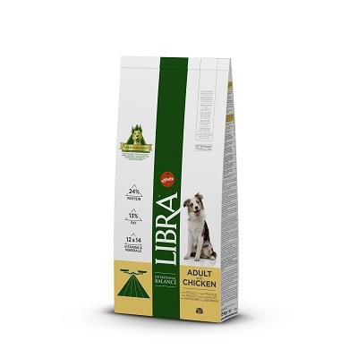 LIBRA DOG CHIKEN Libra, formulata da veterinari esperti nellalimentazione animale, offre: La varietà degli ingredienti migliori per migliorare la vitalità e facilitare la digestione: carni varie, proteine di qualità e cereali integrali. Caratteristiche: Lequilibrio ottimale tra sostanze nutritive(proteine, carboidrati, grassi, fibre, vitamine e minerali) Nessun additivo inutile (nessun conservante o colorante). Garanzia del processo di produzione, cottura a vapore e controlli in ogni fase della produzione. Mangime completo per animali da compagnia. Composizione Cereali (4% frumento integrale, 4% mais), carni e derivati (4% pollo, 4% maiale), sottoprodotti di origine vegetale, oli e grassi, estratti di proteine vegetali, sostanze minerali. Additivi Vitamina A 24.000 IU, Vitamina D3 1.600 IU, Vitamina E 75 mg, Monoidrato del solfato ferroso (Fe: 78 mg) 237 mg, Ioduro di potassio 1,7 mg, Pentaidrato di solfato di rame 30 mg, Monoidrato del solfato di manganese 112 mg, Monoidrato del solfato di zinco (Zn: 196 mg) 360 mg, Selenite di sodio (Se: 0,15 mg) 0,22mg. (valori per kg di prodotto). Componenti analitici Proteina 24%, Oli e grassi grezzi 13%, Fibra grezza 3%, Materia inorganica 8%. Istruzioni per un uso corretto Il mangime è pronto per l’uso e va servito a temperatura ambiente. Lasciare sempre a disposizione dell’animale acqua fresca.