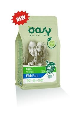 OASY DRY DOG ADULT MEDIUM PESCE KG 3 CIBO SECCO COMPLETO PER CANI ADULTI DI TAGLIA MEDIA DI UN ANNO O PIÙ. Studiato per la dieta quotidiana del tuo cane adulto di taglia media che svolge una normale attività fisica. Inoltre, il pesce come fonte proteica alternativa garantisce altissimi valori nutrizionali e massima digeribilità. CARNE FRESCA La carne fresca offre il massimo quanto a digeribilità, assimilazione dei nutrienti e gusto. Le sue proteine mantengono un eccellente valore biologico, i grassi contengono meno radicali liberi e viene assicurata una migliore conservazione delle vitamine. DENTI Un corretto apporto di Calcio e Fosforo, insieme all’azione pulente data dalla particolare consistenza delle crocchette, favorisce la salute di denti e gengive. PELLE E PELO Gli acidi grassi Omega-6 e-3 favoriscono una buona capacità protettiva della cute e contribuiscono a mantenere pelle e pelo in condizioni ottimali. DIGESTIONE CORRETTA La cicoria è una fonte naturale di FOS (Fruttoligosaccaridi) che insieme ai MOS (Mannanoligosaccaridi) favorisce una corretta digestione. L’estratto di yucca è indicato nel controllo dell’odore delle feci. La polpa di barbabietola è un’ottima fonte di fibre e supporta una regolare attività intestinale. ALIMENTO COMPLETO PER CANI ADULTI DI TAGLIA MEDIA DI UN ANNO O PIÙ COMPOSIZIONE: pesce fresco 20%, frumento, piselli, riso, proteine di pollame disidratate 11,9%, orzo, proteine di pesce disidratate 7%, mais, grasso di pollame 4,8%, pesce idrolizzato 2%, polpa di barbabietola 0,6%, uova intere disidratate 0,5%, cicoria 0,5%, lievito di birra, minerali, prodotti del lievito (fonte di MOS) 1.000 mg/kg, Yucca schidigera 170 mg/kg. COMPONENTI ANALITICI: proteina grezza 25%, grassi grezzi 15%, acidi grassi Omega-3 0,85%, acidi grassi Omega-6 2%, fibre grezze 3%, ceneri grezze 8%, calcio 1,7%, fosforo 1,1%, umidità 8,5%. ADDITIVI: Additivi nutrizionali: Vitamina A: 15.000 IU/kg, Vitamina D3: 2.000 IU/kg, Vitamina E: 150 mg/kg, ferro (solfato di ferro (II) monoidrato): 68 mg/kg, iodio (ioduro di potassio): 3,2 mg/kg, rame (solfato di rame(II) pentaidrato): 9 mg/kg, manganese (solfato manganoso, monoidrato): 6,8 mg/kg, zinco (ossido di zinco): 108 mg/kg, selenio (selenito di sodio): 0,11 mg/kg, taurina: 480 mg/kg, L-carnitina: 40 mg/kg. Additivi tecnologici: antiossidanti. SENZA AROMATIZZANTI O COLORANTI ARTIFICIALI AGGIUNTI.