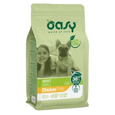 CIBO SECCO COMPLETO PER CANI ADULTI DI TAGLIA PICCOLA I cani di piccola taglia soffrono spesso di disturbi dentali, con Oasy fornisci ogni giorno il giusto apporto di minerali specifici per favorire gengive e denti sani. CARNE FRESCA La carne fresca offre il massimo quanto a digeribilità, assimilazione dei nutrienti e gusto. Le sue proteine mantengono un eccellente valore biologico, i grassi contengono meno radicali liberi e viene assicurata una migliore conservazione delle vitamine. DENTI Un corretto apporto di Calcio e Fosforo, insieme all’azione pulente data dalla particolare consistenza delle crocchette, favorisce la salute di denti e gengive. SISTEMA IMMUNITARIO Il lievito di birra, ricco di Vitamine del gruppo B e di importanti minerali, aiuta a rafforzare le difese immunitarie. La Vitamina E, quale antiossidante naturale, contribuisce a mantenere i cani attivi e vitali. DIGESTIONE CORRETTA La cicoria è una fonte naturale di FOS (Fruttoligosaccaridi) che insieme ai MOS (Mannanoligosaccaridi) favorisce una corretta digestione. L’estratto di yucca è indicato nel controllo dell’odore delle feci. La polpa di barbabietola è un’ottima fonte di fibre e supporta una regolare attività intestinale. CIBO SECCO COMPLETO PER CANI ADULTI DI TAGLIA PICCOLA Composizione: Pollo fresco (20%), farina di pollame, riso, grasso di pollame, orzo, mais, grano, sottoprodotti di origine vegetale, polpa di barbabietola (2%), idrolizzato di fegato di pollame, minerali, uova intere disidratate, lievito di birra (0,5%), cicoria (0,5%), estratto di yucca (170 mg/kg), mannanoligosaccaridi (60 mg/kg). Componenti analitici: Proteina grezza 27%, oli e grassi grezzi 17%, acidi grassi Omega-6 3,7%, acidi grassi Omega-3 0,37%, fibra grezza 2,65%, ceneri grezze 8,5%, calcio 1,5%, fosforo 1,1%, umidità 9%. Additivi: Additivi nutrizionali: Vitamina A 17.000 IU/kg, Vitamina D3 2.000 IU/kg, Vitamina E 160 mg/kg, Solfato ferroso monoidrato 75 mg/kg, Ioduro di potassio 3,5 mg/kg, Solfato rameico pentaidrato 10 mg/kg, Solfato manganoso monoidrato 7,5 mg/kg, Ossido di zinco 150 mg/kg, Selenito di sodio 0,2 mg/kg, L- carnitina 40 mg/kg, Taurina 110 mg/kg. Additivi tecnologici: antiossidanti naturali. Senza aromatizzanti o coloranti artificiali aggiunti. RAZIONE GIORNALIERA CONSIGLIATA: GRAMMI/GIORNO Peso del cane Grammi al giorno 2-3 kg 47-63 3-4 kg 63-79 4-6 kg 79-107 6-8 kg 107-132 8-10 kg 132-157
