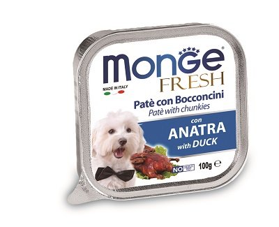 Paté e Bocconcini con Anatra Formato: 100 g Delizioso paté con un cuore di prelibati bocconcini con anatra fresca selezionata per offrire ai nostri amici il benessere quotidiano di cui hanno bisogno e per essere sempre in forma. Senza coloranti, conservanti e con un basso tenore di zuccheri, è ideale per cani di piccola taglia e come premio per i cani più grandi. Carni fresche 80% (di cui anatra minimo 10%), sali minerali, vitamine.
