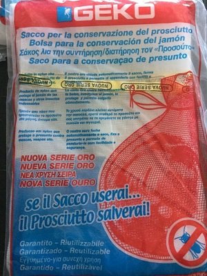 SACCO PROSCIUTTO MAXI La forma di questo sacco,la grandezza del foro, lo spessore e la qualità del filo sono stati calcolati affinché il prosciutto ottenga una stagionatura ottimale. Usando un sacco diverso, con spessori diversi, si può ottenere una stagionatura troppo secca o troppo molle.