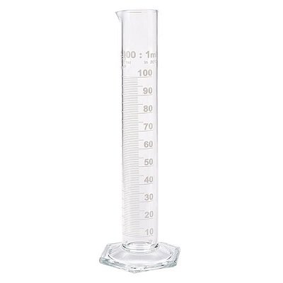 CILINDRO GRADUATO 100 ML. Linee di gradazione in rilievo per una facile lettura, base esagonale per una maggiore stabilità 11210 - Capacità 100 cc, h 24,9 cm