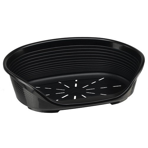 Ecco un accogliente cuccia da interno per cani e gatti realizzata in solida resina termoplastica! Osservate il design e la forma arrotondata: bordi alti e confortevoli, lato frontale ribassato con comodo poggiamento per lanimale, utili piedini di appoggio con antiscivolo. Il fondo opportunamente perforato è stato studiato per consentire il corretto passaggio dellaria. I lettini in plastica Siesta Deluxe sono disponibili in sei formati per cani di tutte le taglie, le misure Siesta Deluxe 2, 4 e 6 sono particolarmente indicate anche per i gatti. Decidete pure con comodo quale tonalità scegliere, ne facciamo di tutti i colori: nero, argento, tortora, bordeaux, rosa oppure marrone. Potrete abbinare in qualsiasi momento i cuscini per cani della serie Sofà, Venus e Relax, ideali per tutte le stagioni. 82X59,5X h 25 CM