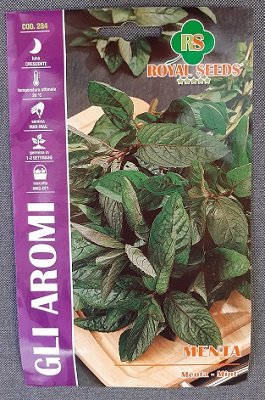 BUSTA MENTA PIPERITA Perenne. Pianta rustica, alta cm 80 circa, con foglie opposte, di colore verde con bordo dentato e fiori di colore violetto chiaro. La semina si effettua in marzo-aprile per poi mettere a dimora in giugno-luglio, in terreni freschi, distanziando le piante di almeno 40 cm. Le foglie fresche vengono utilizzate come aromatizzante in cucina e nella preparazione di liquori. Si può ottenere anche un the tonico e rinfrescante ed infusi dalle proprietà digestive ed antispasmodiche.