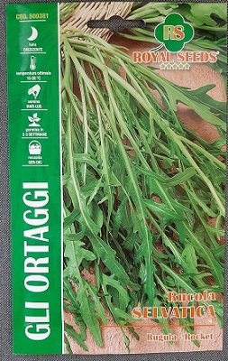BUSTA RUCOLA SELVATICA ROYAL SEEDS Varietà precoce. Pianta a cespo aperto, di medie dimensioni. Foglie verdi, molto frastagliate con costa chiara, croccanti e dallaroma molto intenso.