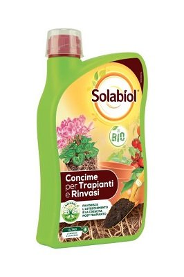 SOLABIOL CONCIME PER TRAPIANTI E RINVASI LT 1 Solabiol® Trapianti e Rinvasi è il concime ideale da applicare durante le operazioni di trapianto e rinvaso. Grazie al mix di elementi nutritivi equilibrato e completo e al carbonio organico e composti biologicamente attivi estratti dalle alghe brune, Solabiol Trapianti e rinvasi favorisce una crescita equilibrata, un maggior sviluppo dellapparato radicale e produzioni superiori aiutando la pianta a superare il periodo di stress da trapianto. Favoriscono l’allungamento delle radici, grazie alla presenza di ALGINATI, ZINCO e RAME Stabilizzano il livello di clorofilla in condizioni di stress: le BETAINE favoriscono la crescita di frutta ed ortaggi più abbondanti, sani e gustosi Aumentano le difese naturali della pianta, inducendo la produzione naturale di LAMINARINE Modalità dimpiego Utilizzare in tutte le fasi del ciclo della pianta e continuare il trattamento fino allautunno. Ideale anche in fase di ripresa vegetativa, per superare i momenti di forte stress come il freddo. Applicare ogni 15 giorni. Primo utilizzo: diluire 2 tappi di prodotto (60 ml) in 3 litri dacqua e annaffiare in maniera omogenea. Utilizzi successivi: diluire 1 tappo di prodotto (30 ml) in 3 litri dacqua e annaffiare in maniera omogenea. Principio attivo Azoto (N) organico 3% - Ossido di Potassio (K2O) solubile in acqua 5% Carbonio (C) organico di origine biologica 10% con crema di alghe (Ascophillum nodosum) Precauzioni per luso Prodotto da usare con prudenza e da tenere fuori dalla portata dei bambini. Per evitare rischi per la salute umana e per l’ambiente, seguire le istruzioni per l’uso riportate sulla confezione.
