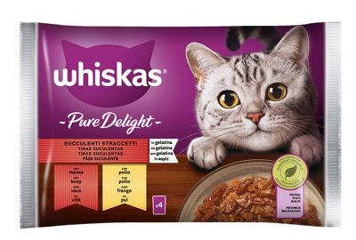 WHISKAS PURE DELIGHT STRACCETTI 4X85 GR con manzo - Ingredienti Composizione: Carni e derivati (20%, 97% naturale* di cui manzo 4% nei bocconcini**) Estratti di proteine vegetali Sostanze minerali (0.7%) Zuccheri Sottoprodotti di origine vegetale *Ingredienti naturali **Bocconcini di solito il 33% del prodotto con pollo - Ingredienti Composizione: Carni e derivati (21%, 100% naturale* di cui pollo 4% nei bocconcini**) Estratti di proteine vegetali Sostanze minerali (0.7%) Zuccheri Sottoprodotti di origine vegetale *Ingredienti naturali **Bocconcini di solito il 33% del prodotto con manzo % Componenti analitici: proteina grezza: 11.7 oli e grassi grezzi: 2.2 ceneri grezze: 1.2 fibra grezza: 0.20 umidità: 84.0 Integrazioni per kg: Additivi nutrizionali: Vitamina B₁: 27.7 mg Vitamina D₃: 189 U.I. Vitamina E: 18.5 mg Taurina: 640 mg Rame (Solfato di rame(II) pentaidrato): 1.4 mg Iodio (iodato di calcio, anidro): 0.33 mg Ferro (solfato di ferro (II) monoidrato): 16.5 mg Manganese (solfato manganoso, monoidrato): 3.3 mg Zinco (solfato di zinco, monoidrato): 21.1 mg Coadiuvanti tecnologici: Gomma di cassia: 2312 mg con pollo % Componenti analitici: proteina grezza: 11.7 oli e grassi grezzi: 2.2 ceneri grezze: 1.2 fibra grezza: 0.20 umidità: 84.0 Integrazioni per kg: Additivi nutrizionali: Vitamina B₁: 27.7 mg Vitamina D₃: 189 U.I. Vitamina E: 18.5 mg Taurina: 640 mg Rame (Solfato di rame(II) pentaidrato): 1.4 mg Iodio (iodato di calcio, anidro): 0.33 mg Ferro (solfato di ferro (II) monoidrato): 16.5 mg Manganese (solfato manganoso, monoidrato): 3.3 mg Zinco (solfato di zinco, monoidrato): 21.1 mg Coadiuvanti tecnologici: Gomma di cassia: 2312 mg
