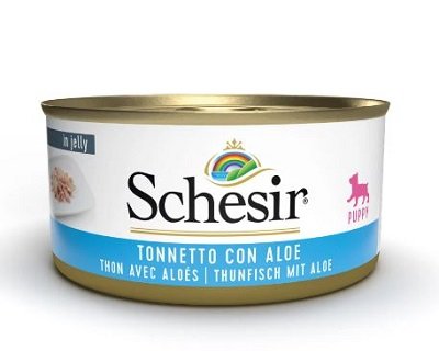 SCHESIR DOG PUPPY TONNETTO CON ALOE GR 150 Schesir Puppy Filetti di pollo con aloe 150g cibo umido in gelatina con ingredienti naturali al 100%, privi di conservanti e coloranti solo le parti migliori del pollo, cotte al vapore e lavorate a mano. Specificatamente pensato per i cuccioli, con aloe. Filetti di pollo 49%, Aloe 5%, Riso 2%, Olio di girasole 1,7%. Vit. A 2000 U.I., vit. E 10 mg, solfato di zinco eptaidrato, 143 mg, solfato ferroso, monoidrato 28 mg, solfato, manganoso monoidrato, 7 mg, ioduro di potassio, 14 mg, solfato rameico, pentaidrato 4 mg. Proteina 9,5%, Grassi grezzi 2%, Fibre grezze 0,1%, Ceneri grezze 1%, Umidità 85%, 59 kcal/100 g.