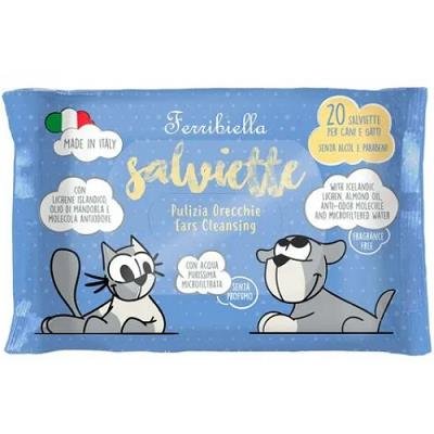 SALVIETTE ORECCHIE PZ 20 Salviette Detergenti Orecchie per Cani e Gatti Ferribiella sono salviette realizzate in morbido tessuto goffrato. Specifiche per la pulizia delle orecchie. Rimuovono delicatamente le secrezioni. Senza alcol, coloranti, parabeni e laurilsolfato (SLS). Con Acqua purissima microfiltrata. Senza profumo. Con lichene islandico, olio di mandorla e molecola antiodore. MODO D’USO: Estrarre la salviettina e passarla nell’orecchio dell’animale. Richiudere sempre la confezione.