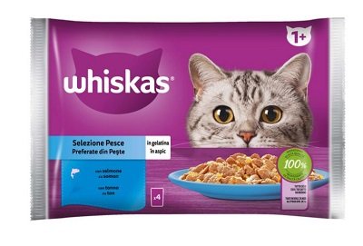 WHISKAS SELEZIONE PESCE 4X85 GR 4 bustine monogusto da 85g di ottima qualità per pasti quotidiani con Bocconcini irregolari in gelatina e in salsa. 100% ingredienti di alta qualità. La nostra gamma Whiskas 1+ offre una varietà di pasti su misura, che sono perfettamente bilanciati per aiutare il tuo gatto a rimanere in forma e felice. Senza coloranti o conservanti artificiali aggiunti. Aiuta a mantenere pelle & pelo sani. Contribuisce alla salute del tratto urinario. Proteina Principale (Gusto) Manzo e Pollo Ingredienti Parte Salmone: carni e derivati (33%), pesci e sottoprodotti dei pesci (di cui 4% di salmone nei bocconcini*), cereali, sostanzeminerali, sottoprodotti di origine vegetale, zuccheri. *Bocconcini di solito il 40% del prodotto. Parte Tonno: carni e derivati (33%), pesci e sottoprodotti dei pesci (di cui 4% di tonno nei bocconcini*), cereali, sostanzeminerali, sottoprodotti di origine vegetale, zuccheri. *Bocconcini di solito il 40% del prodotto Componenti analitici proteina grezza: 7.8 oli e grassi grezzi: 4.0 ceneri grezze: 1.6 fibra grezza: 0.25 umidità: 84.5. Additivi Additivi nutrizionali: Vitamina C: 702 mg, Taurina: 620 mg, Rame (Solfato di rame(II) pentaidrato): 1.2mg, Iodio (iodato di calcio, anidro): 0.22 mg, Ferro (solfato di ferro (II) monoidrato): 11.2 mg, Manganese (solfato manganoso,monoidrato): 2.2 mg, Zinco (solfato di zinco, monoidrato): 16.2 mg / Coadiuvanti tecnologici: Gomma di cassia: 2148 mg / Aromi.