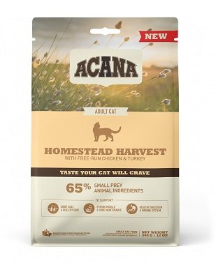 ACANA CAT HOMESTEAD HARVEST KG 1,8 Assicura al tuo piccolo felino un’alimentazione ricca di ingredienti animali di alta qualità. ACANA Homestead Harvest è ricco di pollo, tacchino e anatra, tutti nelle proporzioni della preda intera, con carne, interiora e cartilagine. La ricetta ideale per offrire al tuo gatto un alimento naturale e dal gusto irresistibile e mantenerlo forte e in salute. Sistema immunitario Vitamine, minerali e antiossidanti essenziali per supportare il sistema immunitario Cuore e vista Taurina, EPA e DHA sono nutrienti essenziali per il gatto, per supportare il mantenimento di vista e cuore sani Pelle e pelo sani Un apporto bilanciato di acidi grassi Omega-3 e Omega-6 per supportare pelle e pelo sani Gusto irresistibile Ingredienti animali da prede di piccole dimensioni e infusioni di fegato garantiscono un gusto irresistibile, che i gatti adoreranno Ingredienti Carne di pollo fresca (17%), carne di pollo disidratata (15%), carne di tacchino disidratata (13%), avena intera, piselli interi, grasso di pollo (7%), lenticchie verdi intere, ceci interi, lenticchie rosse intere, uova deposte in nido fresche (4%), carne di tacchino fresca (4%), fibra di lenticchia, olio di merluzzo d’Alaska (1%), carne di anatra fresca (1%), cartilagine di pollo (1%), interiora di pollo fresche (fegato, cuore) (1%), interiora di tacchino fresche (fegato, cuore) (1%), alga Kelp disidratata, zucca Popone intera fresca, zucca intera fresca, mirtilli rossi interi freschi, mirtilli interi freschi. ADDITIVI (per kg): Additivi tecnologici: antiossidanti naturali. Additivi nutrizionali: cloruro di colina: 1.200 mg, taurina: 400 mg, zinco (chelato di zinco di amminoacidi idrato): 150 mg, vitamina B1: 25 mg, vitamina B2: 10 mg, niacina: 50 mg, vitamina B5: 8 mg, vitamina B6: 7,5 mg, acido folico: 0,75 mg, biotina: 0,03 mg, vitamina B12: 0,1 mg, vitamina A: 1.850 IU, vitamina D: 250 IU, vitamina E: 175 IU, rame (chelato di rame (II) di amminoacidi idrato): 11 mg, L-carnitina: 50 mg, DL-metionina: 99 mg. Additivi zootecnici: Enterococcus faecium NCIMB10415: 600x10^6 CFU. • L’ENERGIA METABOLIZZABILE è di 3.760 kcal/kg (429 kcal per dosatore 250 ml/114 g). Le calorie provengono per il 36% da proteine, il 28% da carboidrati e il 36% da grassi, per supportare il benessere generale. • ACANA Cat Homestead Harvest è formulato in linea con i livelli nutrizionali stabiliti da FEDIAF per l’alimentazione di mantenimento per gatti adulti. • ACANA Cat Homestead Harvest è formulato in linea con i livelli nutrizionali stabiliti da FEDIAF per l’alimentazione di mantenimento per gatti adulti. Componenti analitici Proteina grezza 34% Grassi grezzi 16% Fibre grezze 4% Ceneri grezze 8% Umidità 10% Calcio 1,8% Fosforo 1,2% Magnesio 0,1% Taurina 0,1% Acidi grassi Omega-6 2,8% Acidi grassi Omega-3 0,5% DHA 0,1% EPA 0,1%