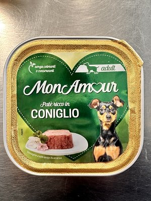 DOG 150 GR CONIGLIO MONAMOUR MONAMOUR patè per cani con CONIGLIO 150 GR. è un alimento completo per cani adulti. Patè per cani con coniglio, alimento completo per cani adulti. Monamour cane 150g è un alimento completo per cani, disponibile in patè. La linea comprende prodotti specifici per cuccioli, cani adulti e anziani. Prodotto con unalta percentuale di carne o pesce senza coloranti, conservanti, glutine e cereali .