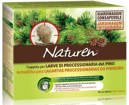 NATUREN TRAPPOLA PER PROCESSIONARIA DEL PINO Naturen kit Rispristino Trappola Processionaria Del Pino Naturen kit Rispristino Trappola Processionaria Del Pino è uno specifico sistema di cattura meccanica adatto alla lotta di larve parassitarie del pino. Le larve sono una minaccia per i pini perchè si nutrono dei loro aghi. Sono pericolose anche per luomo e gli animali, i loro peli urticanti possono provocare delle reazioni allergiche. Si colloca attorno a tronchi di dimetro compreso tra i 30 e i 60 cm (circonferenza da 94 a 188 cm), prima della fuori uscita delle larve dal nido, in modo tale da intrappolarle appena queste escono e camminano sullalbero. Il prodotto è completamente meccanico, non contiene insetticidi o attrattivi chimici. Trappola regolabile e riutilizzabile. Facile da montare. Efficacia garantita contro larve del pino. Appena le larve sono state catturate da Naturen kit Rispristino Trappola Processionaria Del Pino, versare un litro di acqua nella canalina (permette di lavare la canalina e di limitare la dispersione di peli urticanti). Sganciare il sacco e chiuderlo immediatamente e ermeticamente, poi rinchiudere la trappola in un sacco di plastica impermeabile (eliminare attraverso una discarica o un organismo autorizzato). Attenzione, anche da morte le larve mantengono il loro potere urticante!