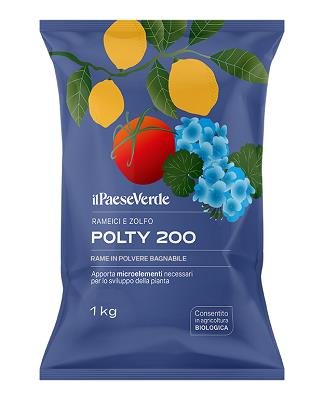 POLTY 200 BUSTA KG 1 IL PAESE VERDE POLTIGLIA BORDOLESE - RAME + BORO CONSENTITO IN AGRICOLTURA BIOLOGICA a) apporta microelementi necessari per lo sviluppo della pianta b) azione collaterale contro le malattie fungine DESCRIZIONE POLTY 20 è un prodotto a base di rame solfato che si distribuisce sulla vegetazione previa diluizione in acqua. POLTY 20 oltre a contenere rame, apporta anche boro, elemento molto utile nello sviluppo delle piante. POLTY 20 è un prodotto consentito in agricoltura biologica e la sua regolare applicazione permette una vegetazione forte e rigogliosa. DOSI E MODI DUSO Il prodotto va utilizzato per concimazione fogliare. Colture da frutto (melo, pero, pesco, ciliegio, albicocco, susino) e vite: 2,8-3,3 kg/ha sciolti in 500- 700 litri d’acqua. Olivo: 3,5-4,0 kg/ha sciolti in 500-700 litri d’acqua. Fragole e colture ortive: 2,5-3,5 kg/ha sciolti in 500- 700 litri d’acqua. Colture di pieno campo (barbabietola, cereali, riso, tabacco): 2,0-4,0 kg/ha sciolti in 400-600 litri d’acqua. COMPOSIZIONE CONCIME CE miscela di microelementi Boro (B) sodio, Rame (Cu) solfato Boro (B) solubile in acqua ........................ 0,2 % Rame (Cu) totale ......................................... 20 % Materie prime: borato di sodio, sale di rame (solfato).