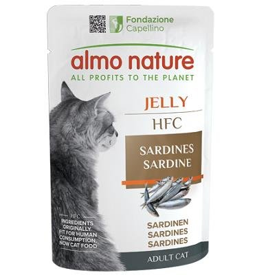 HFC JELLY CATS 55 GR SARDINE ALMO NATURE Human Grade Carne o pesce in origine idonei al consumo umano e ora utilizzati in questi alimenti per cani o gatti. Gluten Free Ricette no-gluten. Monoproteico Ununica fonte di proteine animali. Ideale in caso di difficoltà alimentari. Sardine* 55%, brodo di sardine, riso 1,5%. *Fonte naturale di omega 3. Proteina Grezza 14 % Fibre Grezze 0,1 % Grassi Grezzi 6 % Ceneri Grezze 1 % Umidità 77 % Omega 3 1,6 % Energia 1110 kcal/kg