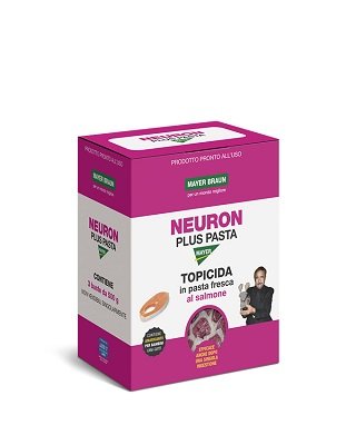 NEURON PLUS PASTA 1500 GR TRIS AL SALMONE MAYER BRAUN Briochina speciale in bustina adatta a far fronte all’inappetenza del topo grazie all’impiego di salmone fresco estremamente gradito dai roditori. E’ una delle esche più appetibili. principio attivo Bromadiolone 0,005 g