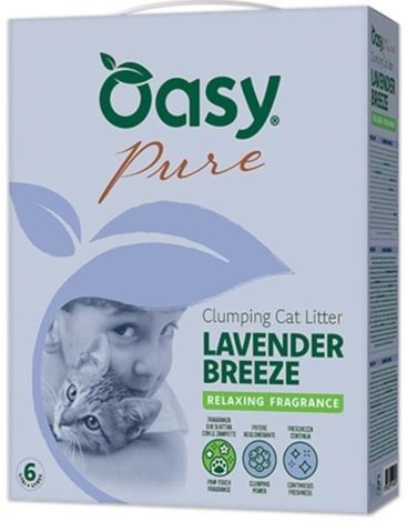 LETTIERA MINERALE PURE LAVENDER BREEZE 6 LT OASY Lettiera agglomerante per gatti - fragranza alla lavanda Indicato per Gatti di tutte le età Una lettiera super premium a base di bentonite, soffice e delicata al tocco e dallalto potere agglomerante. Arricchita da una rilassante e delicata profumazione alla lavanda che viene rilasciata ad ogni utilizzo.