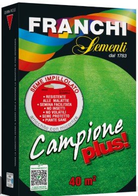 PRATO CAMPIONE PLUS Miscuglio di sementi per tappeti erbosi sia in ombra che in posizione soleggiata, estremamente resistente perchè protetto da impillolatura e arricchito con micorrize che ne facilitano la germinazione. Si adatta alle diverse situazioni di terreno e di temperatura con buona resistenza al calpestio e discreta velocità di sviluppo. Si semina dallinizio della primavera fino ad autunno inoltrato.
