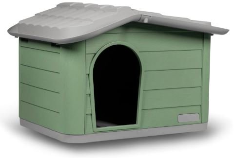 CUCCIA PRINCESS MINI SMONTABILE ECO SALVIA contiene un minimo di 70% plastica riciclata cuccia per cani/ gatti taglia S pareti smontabili, facile da assemblare griglie laterali di areazione superficie effetto legno