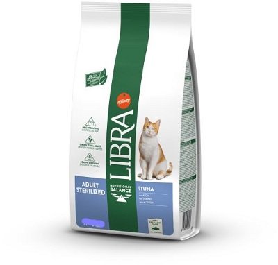 LIBRA CAT ADULT STERILIZED TONNO KG 10 Libra è un prodotto premium, creato con un perfetto equilibrio tra proteine, grassi, fibre, vitamine, minerali e la varietà dei migliori ingredienti per migliorare la vitalità e promuovere la digestione. Libra, formulata da veterinari esperti nellalimentazione animale, offre: La varietà degli ingredienti migliori per migliorare la vitalità e facilitare la digestione: carni varie, proteine di qualità e cereali integrali. Lequilibrio ottimale tra sostanze nutritive(proteine, carboidrati, grassi, fibre, vitamine e minerali) Nessun additivo inutile (nessun conservante o colorante). Garanzia del processo di produzione, cottura a vapore e controlli in ogni fase della produzione. Mangime completo per animali da compagnia. Composizione Cereali (4% orzo), carni e derivati, estratti di proteine vegetali, pesci e sottoprodotti dei pesci (tonno disidratato 10%) sottoprodotti di origine vegetali, oli e grassi, ortaggi, sostanze minerali.