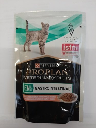 PPVD FELINE EN SALMONE GR.85 BUSTA Alimento dietetico completo per gatti di tutte le età per la riduzione dei disturbi acuti dell’assorbimento intestinale, la ripresa nutrizionale e la convalescenza. Formulato con un accresciuto livello di elettroliti, ingredienti ad elevata digeribilità, con elevato tenore energetico ed elevato tenore di sostanze nutritive essenziali. Composizione: Carni e derivati, pesci e sottoprodotti dei pesci (salmone 4%), uova e prodotti a base di uova, cereali, sottoprodotti di origine vegetale (fibra di pisello 1.4%), sostanze minerali, lieviti, oli e grassi, zuccheri. Ingredienti a elevata digeribilità: tacchino, fegato, salmone, rene, uova disidratate, farina di riso, olio di pesce. Additivi: Additivi nutrizionali: UI/kg: Vit. A: 1680 Vit. D3: 235 mg/kg: E1: 49 3b202: 0.94 E4: 6.0 E5: 8.6 3b605: 119 Componenti analitici: Umidità: 76.4% Proteina: 11.5% Oli e grassi grezzi: 6.3% Ceneri grezze: 2.2% Fibra grezza: 0.6% Sodio: 0.19% Potassio: 0.22% Taurina: 1700 mg/kg. EM: 1110 kcal/kg
