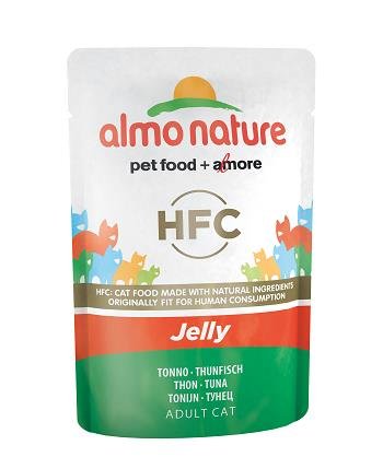 ALMO NATURE HFC JELLY CATS 55 GR TONNO HFC: una linea di ricette in cui la chiara identificazione dell’origine degli ingredienti garantisce al tuo gatto il miglior apporto naturale di proteine animali per un corretto equilibrio alimentare e benessere psicofisico. Con ingredienti HFC, cioè in origine idonei al consumo umano e ora alimento per gatti, grazie alla loro gelatina vegetale costituiscono anche un aiuto per la rimozione dei boli di pelo. Cucinate semplicemente in brodo, senza additivi chimici o coloranti, le ricette HFC Jelly sono un incentivo goloso per il pasto del tuo gatto! 100% HFC Carne o pesce in origine idonei al consumo umano e ora utilizzati in questi alimenti per cani o gatti. Monoproteina Ununica fonte di proteine animali. Ideale in caso di difficoltà alimentari. Gluten Free Ricette no-gluten. Proteine di alta qualità Alimenti con proteine di alta qualità, che favoriscono le principali funzioni corporee e rispettano la natura carnivora del tuo cane o gatto. Composizione Tonno 51%, brodo di tonno, riso 1%.