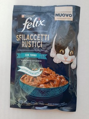 FELIX SFILACCETTI RUSTICI 80 G TONNO Alimento completo per gatti adulti. Composizione: carni e derivati (16%), estratti di proteine vegetali, pesci e sottoprodotti dei pesci (tonno 4%), sostanze minerali, zuccheri, oli e grassi, sottoprodotti di origine vegetale. Sfilaccetti: 50% carni e derivati.