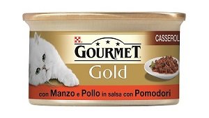 Composizione: Carni e derivati (di cui manzo 6%, pollo 8%), sottoprodotti di origine vegetale (pomodoro 4% nella salsa), estratti di proteine vegetali, cereali, pesci e sottoprodotti dei pesci, sostanze minerali, zuccheri. Additivi: Additivi nutrizionali: UI/kg: Vit A: 1365 Vit D3: 210 mg/kg: Fe(E1):9,5 I(E2):0,2 Cu(E4):0,8 Mn(E5):1,8 Zn(E6):9,5. Componenti analitici: Umidità 81 % Proteina 10 % Oli e grassi grezzi 2,8 % Ceneri grezze 2,3 % Fibra grezza 0,5 %