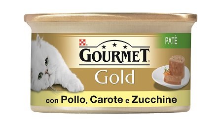 Composizione: Carni e derivati (di cui Pollo 10%), ortaggi (carote 4%, zucchine 4%), sostanze minerali, zuccheri, sottoprodotti di origine vegetale. Additivi: Additivi nutrizionali: UI/kg: Vit A: 1415 Vit D3:220 mg/kg: Fe(E1):10 I(E2): 0,2 Cu (E4):0,8 Mn(E5):1,9 Zn(E6):10. Con conservanti. Componenti analitici: Umidità 81,5% Proteina 11,5% Oli e grassi grezzi 4,0% Ceneri grezze 2,5% Fibra grezza 0,5%