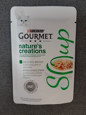 Composizione: carni e derivati (pollo naturale 25%, ortaggi (4% da ortaggi disidratati), pesci e sottoprodotti dei pesci, sottoprodotti di origine vegetale. Componenti analitici: Umidità: 88.0% Proteina: 8.0% Oli e grassi grezzi: 0.10% Ceneri grezze: 1.5% Fibra grezza: 0.05%