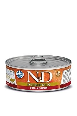 N&D WET CAT PUMPKIN QUAGLIA 80 GR Alimento completo per gatti adulti. COMPOSIZIONE Filetto di quaglia (30%), pollo, aringhe, uova sode, zucca (5%), olio di pesce, patata dolce, melograno, fruttooligosaccaridi, cloruro di colina, condroitina solfato, glucosamina, vitamine, minerali. ADDITIVI PER KG Additivi nutrizionali: Vitamina A 4800UI Vitamina D3 320UI Vitamina E 160mg chelato di Zinco dell’analogo idrossilato di metionina 200mg chelato di Manganese dell’analogo idrossilato di metionina 40mg chelato di Ferro dell’analogo idrossilato di metionina 70mg chelato di Rame dell’analogo idrossilato di metionina 16mg DL-methionine 1500mg taurina 800mg L-Carnitina 50mg. COMPONENTI ANALITICI Umidità 75,00% proteina grezza 12,50% oli e grassi grezzi 5,20% fibra grezza 1,00% ceneri grezze 2,40%.