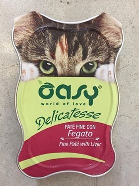 Alimento completo per gatti. Composizione: Cami e derivati (62% di cui 4% fegato di pollo), oli e grassi, sostanze minerali, sottoprodotti di orgine vegetale. Componenti analitici: proteina grezza 10,5%, Oli e grassi grezzi 6,8%, Ceneri grezze 1,8%, Fibra grezza 0,5%, Umidità 79,5%.