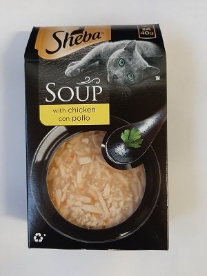 Un delizioso brodo che inebria le papille gustative del tuo micio! Sheba Classic Soup è un alimento umido per il benessere del gatto. Sheba Classic Soup buste 4 x 40 g: alimento complementare per tutti i gatti adulti con i migliori ingredienti preparati con procedura delicata privo di aromi e conservanti artificiali in pratica busta monoporzione da 40 gr Filetti di Pollo: filetti di pollo 23%, amido di tapioca, carote, glutine da frumento, sostanze minerali.