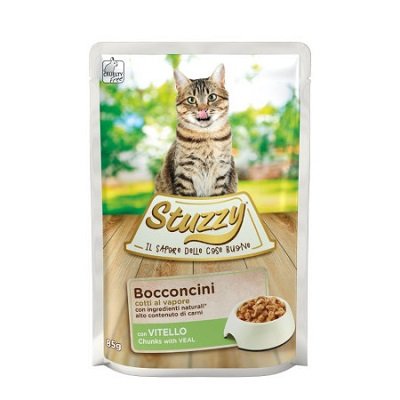 STUZZY CAT BOCCONCINI VITELLO GR 85 I Bocconcini con Vitello di Stuzzy sono la scelta giusta per assicurare al tuo gatto un’alimentazione completa e gustosa, grazie ad un alto contenuto di carni e ingredienti naturali. Mangime completo per animali da compagnia Composizione 45% carni e derivati (8% vitello), sottoprodotti di origine vegetale (0,4% inulina da cicoria), sostanze minerali. Additivi Additivi nutrizionali: vit. D3 200 U.I., vit. E 100 U.I., biotina 100 μg, taurina 100 mg, Zn (solfato di zinco monoidrato) 20 mg, Mn (solfato manganoso monoidrato) 3 mg (valori per kg. di prodotto) Componenti analitici Proteina 7,5%, fibre grezze 0,3%, grassi grezzi 4%, ceneri grezze 1,5%, umidità 82%.