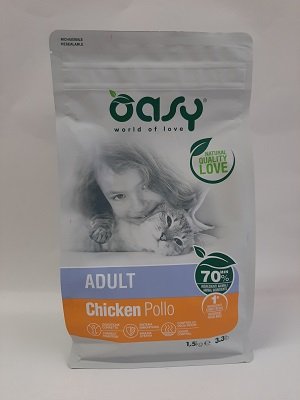 ADULT POLLO ALIMENTO COMPLETO PER GATTI ADULTI COMPOSIZIONE: Pollo fresco (>40%), carne di pollame disidratata (30%), riso (>15%), proteina di riso, grasso di pollo, fegato di pollo idrolizzato (5%), proteina della patata, lievito di birra (3%), cellulosa, polpa di barbabietola (1%), olio di pesce, pesce, cloruro di sodio, uova intere disidratate, polifosfati di sodio, inulina (1.000 mg/kg fonte di fruttoligosaccaridi), mannanoligosaccaridi (1.000 mg/kg), cloruro di potassio, estratto di agrumi (500 mg/kg), estratto di yucca (170 mg/kg). COMPONENTI ANALITICI: Proteina grezza 33%, oli e grassi grezzi 15%, acidi grassi Omega-6 2,5%, acidi grassi Omega-3 0,5%, fibra grezza 3%, ceneri grezze 7%, calcio 1,1%, fosforo 0,9%, magnesio 0,09%, umidità 9%. ADDITIVI: Additivi nutrizionali: Vitamina A 20.000 UI/kg, Vitamina D3 1.500 UI/kg, Vitamina E 600 mg/kg, Vitamina C 75 mg/kg, L-taurina 2.100 mg/kg, DL- metionina 1.000 mg/kg, Solfato ferroso monoidrato 150 mg/kg, Ioduro di potassio 3 mg/kg, Solfato rameico pentaidrato 8 mg/kg, Solfato manganoso monoidrato 8 mg/kg, Ossido di zinco 120 mg/kg, Selenito di sodio 0,4 mg/kg. Additivi tecnologici: antiossidanti naturali. Senza aromatizzanti o coloranti artificiali aggiunti. CARNE FRESCA La carne fresca offre il massimo quanto a digeribilità, assimilazione dei nutrienti e gusto. Le sue proteine mantengono un eccellente valore biologico, i grassi contengono meno radicali liberi e viene assicurata una migliore conservazione delle vitamine. DIGESTIONE L’Inulina è una fonte di prebiotici FOS (Fruttoligosaccaridi) che con i MOS (Mannanoligosaccaridi) favorisce un corretto equilibrio della flora batterica intestinale. La polpa di barbabietola è un’ottima fonte di fibre che contribuisce a migliorare la salute digestiva. SISTEMA IMMUNITARIO L’ estratto di agrumi, ricco di Vitamina C, favorisce difese naturali forti. Il lievito di birra (Vitamine del gruppo B e minerali) contribuisce a rafforzare il sistema immunitario dei gatti. CONTROLLO DEGLI ODORI L’estratto di yucca è particolarmente indicato nel controllo degli odori di feci e urine. La yucca è un ingrediente naturale che ha la capacità di assorbire quelle sostanze che causano cattivo odore nella lettiera, come ad esempio l’ammoniaca. RAZIONE GIORNALIERA CONSIGLIATA: GRAMMI/GIORNO Peso del gatto Grammi al giorno 3 kg 45 4 kg 45-60 5 kg 55-75 6 kg 70-90 7 kg 80-105