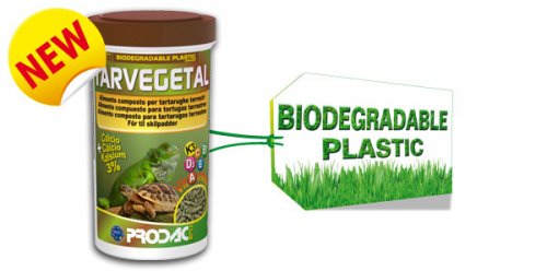 TARVEGETAL 1200 ML 260 GR. Alimento composto in sticks per tartarughe terrestri. TARVEGETAL è un alimento con una formulazione studiata appositamente per tutte le tartarughe terrestri. La corretta quantità di proteine, fibre, vitamine, calcio e fosforo garantisce un’alimentazione ottimale. Composizione: cereali, erbe, sostanze minerali, soia, sottoprodotti di origine vegetale, lieviti, pesci e sottoprodotti di pesci, germe di grano, semi di lino, mela, mirtilli. Additivi nutrizionali: Vitamina A (3a672a) 25.000 U.I./kg, Vitamina D3 (3a671) 2.000 U.I./kg, Vitamina C (3a312) 1.000 mg/kg, Vitamina E (3a700) 100 mg/kg, Vitamina K3 (3a710) 10 mg/kg, Vitamina B1 (3a821) 19,6 mg/kg. Componenti Analitici: proteina grezza 13,62%, ceneri grezze 12,00%, grassi grezzi 3,09% fibre grezze 8,23%, umidità 5,64%, calcio 3,00%, fosforo 0,40%.