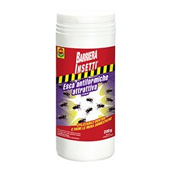 COMPO ESCA ANTIFORMICHE ATTRATTIVA GR.200 COMPO Anti Formiche Granuli Esca in granuli solubili Biocida con doppia applicazione: sia tal quale che sciolto in acqua Utilizzabile sia in ambienti interni che esterni Una sola applicazione distrugge il nido In barattolo spargitore Descrizione del prodotto COMPO Antiformiche Granuli è unesca in granuli solubili, non polverulenti, a base di zucchero. Le formiche (formica nera/formica da giardino Lasius niger, formiche adulte) vengono eliminate velocemente da percorsi, piazzole, terrazze, locali di deposito (escluse dispense), garage, capannoni, camere vuote o simili grazie al buon effetto attrattivo del prodotto. La doppia possibilità di applicazione - distribuzione a spaglio e irrorazione - garantisce unefficacia ottimale anche in condizioni sfavorevoli. Il prodotto è provvisto di una buona solubilità in acqua e biodegradabilità. Laggiunta di un agente amaricante ne impedisce lingestione accidentale da parte dei bambini. Impiego Raccomandazioni per luso Utilizzare esclusivamente in ambienti che non vengono a contatto con acqua, ossia non sono esposti a pioggia e inondazioni. Non applicare in ambienti che vengono regolarmente puliti con luso di acqua. Per evitare avvelenamenti, il prodotto deve essere utilizzato esclusivamente laddove sia possibile evitare il contatto con animali, anche domestici o selvatici, e bambini. Lavare con acqua le superfici contaminate dal prodotto o da residui di prodotto. Utilizzare panni monouso inumiditi da smaltire successivamente tra i rifiuti solidi.