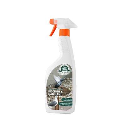 DISABITUANTE PICCIONI E GABBIANI ML.750 Disabituante Piccioni & Gabbiani è un prodotto studiato specificamente per il cambiamento delle abitudini di piccioni, gabbiani e altri volatili in modo totalmente naturale. A base di una miscela di oli essenziali, il prodotto sviluppa un’azione olfattiva particolarmente sgradevole per questi animali, i quali perderanno l’abitudine di frequentare e quindi di sporcare coi propri escrementi gli ambienti trattati (come finestre, davanzali, balconi, terrazzi, giardini). Il prodotto, in confezione trigger, è già pronto all’uso e non va diluito ulteriormente in acqua. Se usato correttamente, è innocuo per animali domestici, persone e per l’ambiente in cui vivono. ISTRUZIONI PER L’USO Prima dell’applicazione, si consiglia di pulire bene l’ambiente interessato. Agitare il contenitore prima dell’uso e distribuire il prodotto a una distanza non troppo ravvicinata (40-50 cm) e in abbondanza, in modo da formare una barriera per la zona da proteggere. Per le prime applicazioni, si consiglia una distribuzione costante e giornaliera, andando poi ad allungare lentamente l’intervallo tra un intervento e l’altro. Se l’ambiente viene lavato o bagnato dalla pioggia, è necessaria un’ulteriore applicazione del prodotto. Il prodotto non macchia, ma prima di usarlo su pavimenti, coperte, tappeti o altre superfici delicate fare un test in un angolo nascosto.