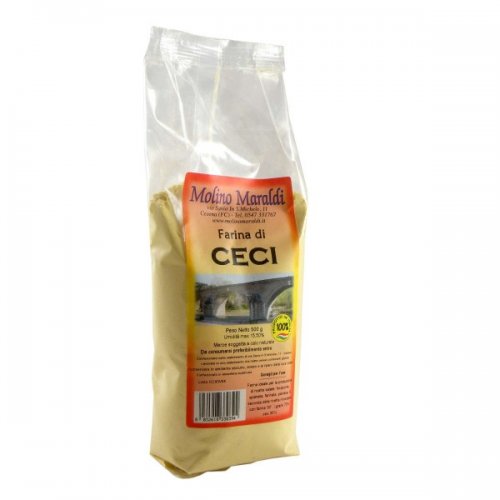 La farina di ceci si ottiene dalla macinazione dei ceci essiccati indispensabile è il processo di raffinazione, per eliminare la crusca. La farina mantiene quasi tutte le proprietà dei legumi: ricca di sali minerali, vitamine del gruppo C, B, A, K, proteine vegetali, acidi grassi essenziali come lacido alfa-linoleico. CONSIGLI DI UTILIZZO. La farina di ceci, naturalmente priva di glutine, viene utilizzata per varie preparazioni alimentari, soprattutto in alcune regioni italiane quali Liguria, Sicilia e Toscana. Ricordiamo infatti che è ingrediente di base per specialità regionali come la farinata o la panissa ligure, le panelle siciliane, la cecina toscana. La farinata è una focaccia bassa e morbida con crosta dorata, a base di farina di ceci, olio extravergine di oliva e sale molto gustosa affonda le sue origini nelle battaglie navali medioevali, secondo quanto narra la tradizione. Le panelle palermitane sono frittelle a base di farina di ceci, con le quali si farciscono panini venduti in chioschi come cibo di strada. MODALITÀ DI CONSERVAZIONE. Conservare il prodotto in luogo fresco e asciutto, al riparo dalla luce solare.