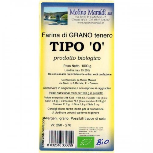 Farina bianca setacciata, adatta per tutti gli usi. E la farina universale. La farina biologica è ottenuta da grani coltivati secondo le norme che regolano il biologico.