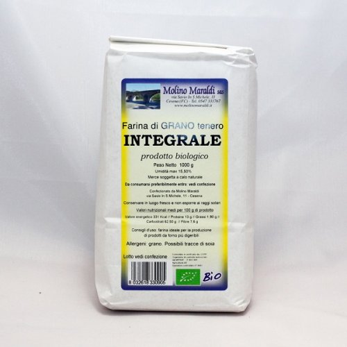 Farina ottenuta dalla macinazione di grani da agricoltura biologica. Ricca di fibre, contenute nella crusca, risulta ideale per la produzione di pane, biscotti e prodotti da forno in genere. Si consiglia di miscelarla a farina raffinata, per una resa tecnicamente migliore. Consigli di utilizzo : è difficile lavorare da sola la farina integrale. Per un risultato migliore dei prodotti si consiglia di miscelare con farine non integrali (tipo 00 o tipo 0). Ottima per pane, focacce, pizze, pasta e per tutti i prodotti in genere. Indicazioni per la conservazione : conservare in luogo fresco e asciutto, al riparo dai raggi solari.