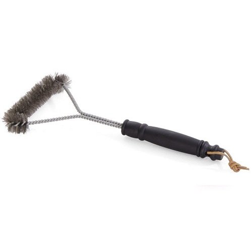 Spazzola per la pulizia del barbecue. Realizzata in acciaio con manico in plastica. Dimensione: 31 cm.